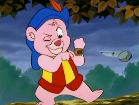 Wie Cubbi diese Schleuder bekam und wer sie gebaut hat, ist nicht bekannt. Da Cubbi aber handwerklich sehr geschickt ist, hat er sie eventuell selbst hergestellt.